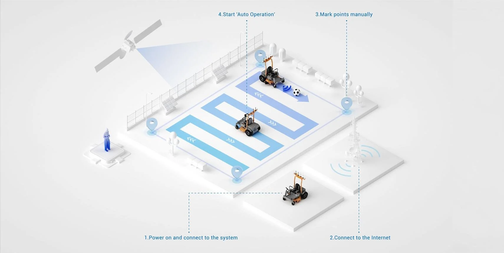 Autonomía y precisión robótica: sistemas eléctricos con navegación RTK y sensores inteligentes diseñados para minimizar la intervención.